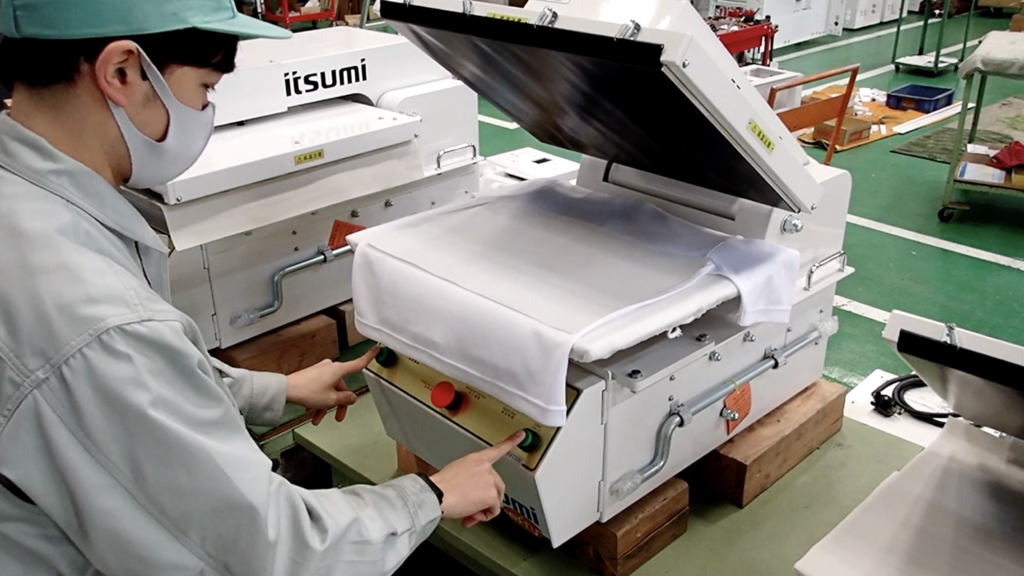ここでは、株式会社イツミ製の熱転写プレス機「AF-54TEN」を例に、昇華転写の基本的な作業手順をご紹介します。※他機種や他メーカー製品の場合には手順が異なる場合もございます。